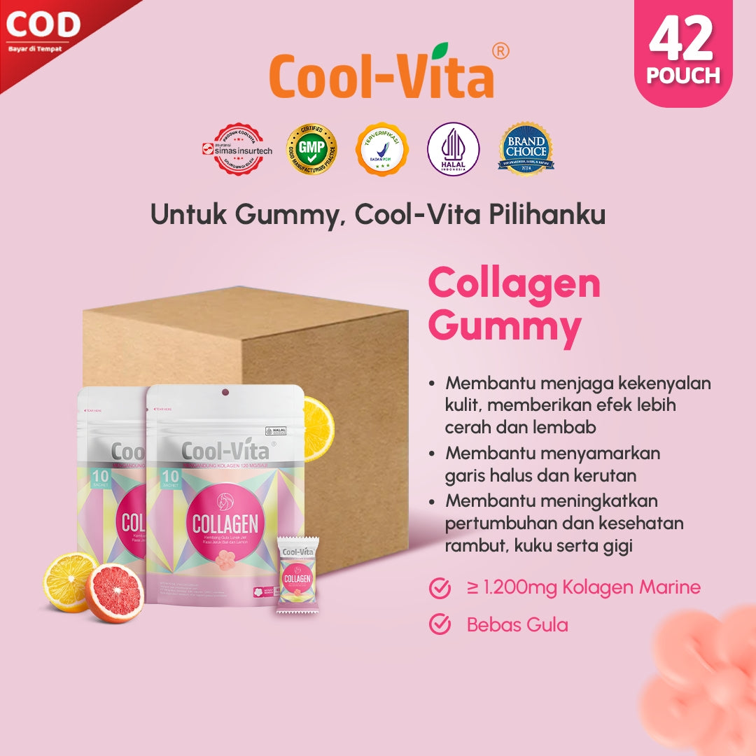 Wholesale Cool-Vita Collagen Gummy Rasa Jeruk Bali dan Lemon (1 Dus isi 42 Pouch)